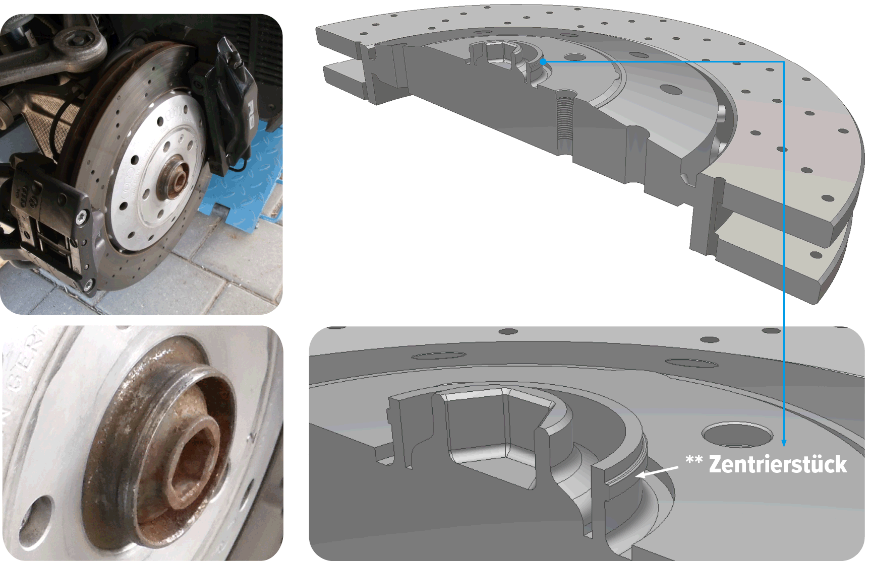 Warum werden für viele, neuere Audi-Modelle keine System 5 Scheiben angeboten? Grund: Die Konstruktion der Radnabe erlaubt keine Montage von 3-10mm Scheiben ohne Zentrierung.